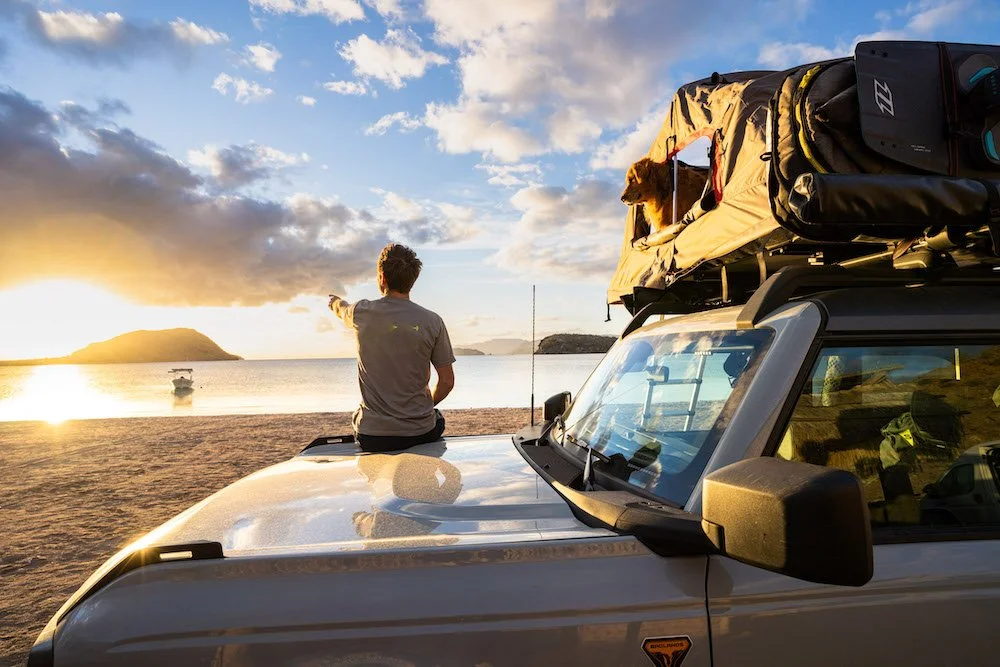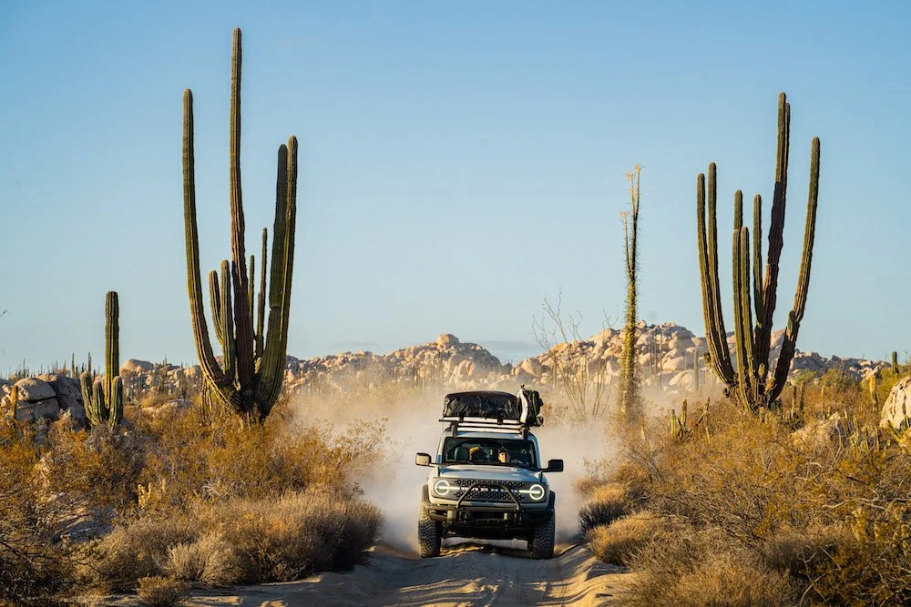 Andrew and the Ford Bronco speeding through the dirt roads of Catavina for sunset. Photo by Dalton Johnson