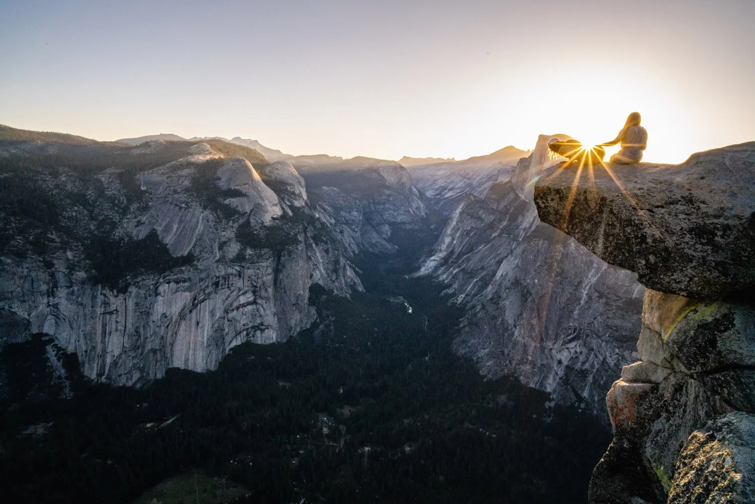 Enjoying sunrise at Glacier Point and peeking down the 2000 foot cliff. Photo by Dalton Johnson