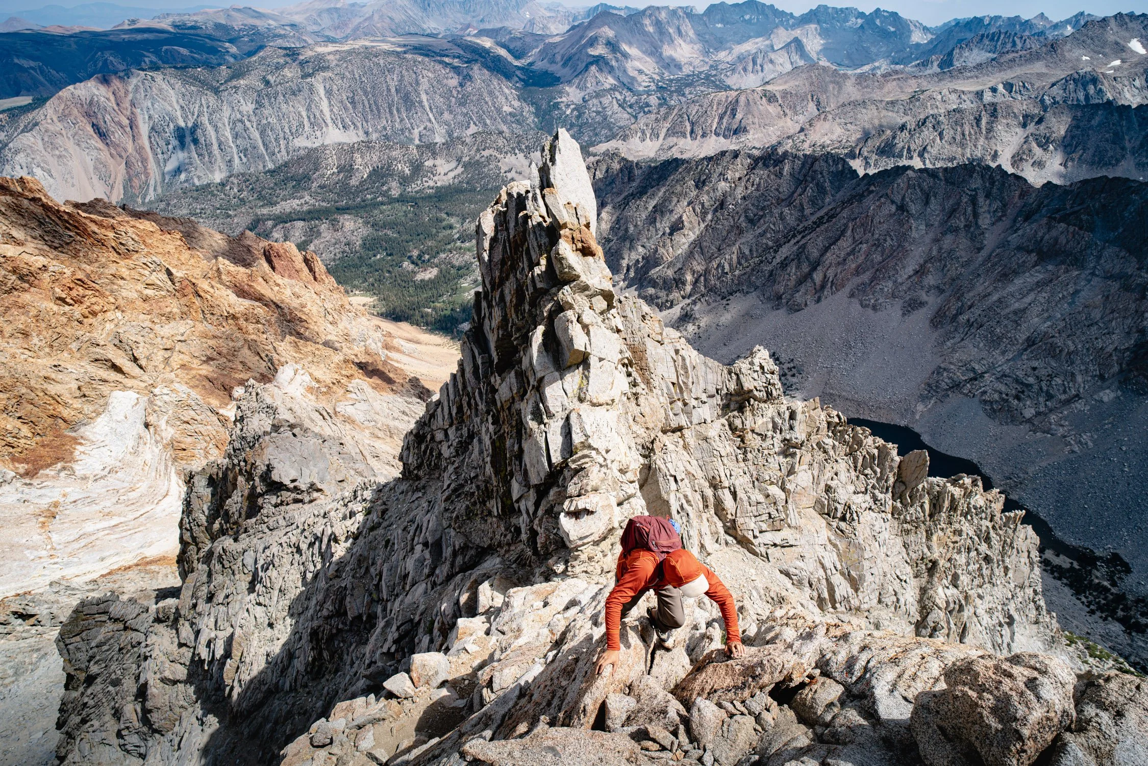 After hours of toil and determination, you'll finally reach the crown jewel—the summit ridgeline of Mount Emerson. This knife-edge ridge made me smile as I walked across the top. I couldn’t help myself. The views are incredible and it just feels wrong that you are there. But, we are curious monkeys just climbing to the top to see what is there.