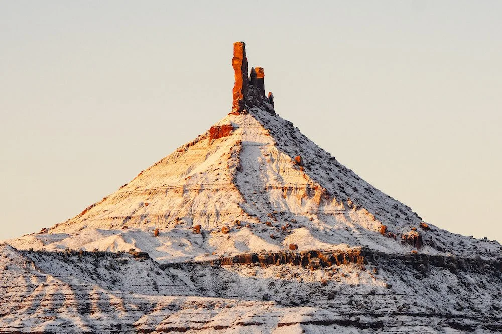 Castletone Tower glowing bright red in the sunset light of Moab, Utah. Photograph by Dalton Johnson