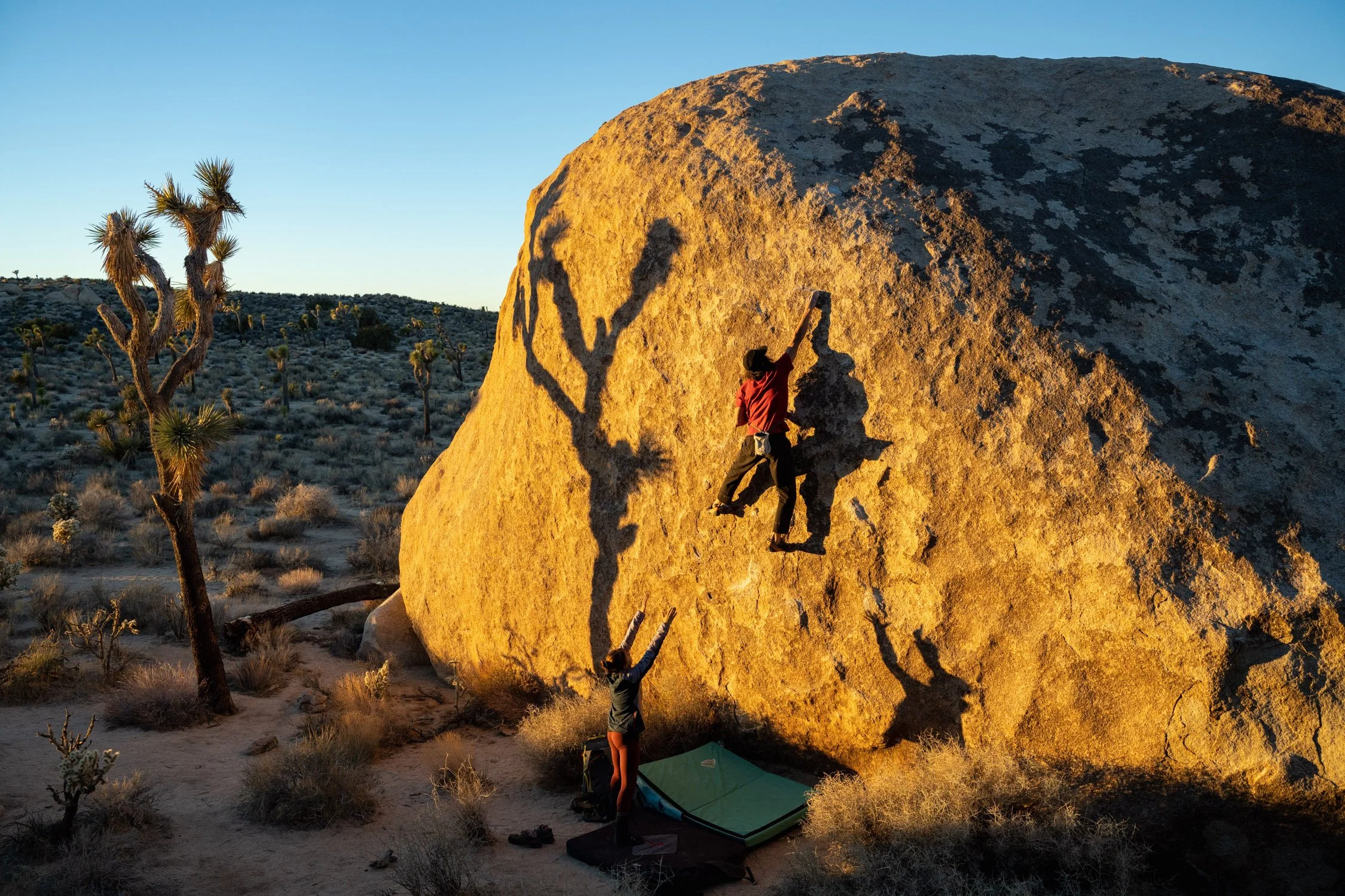 Climbing LHMBP in Joshua Tree at sunset. Photo by Dalton Johnson