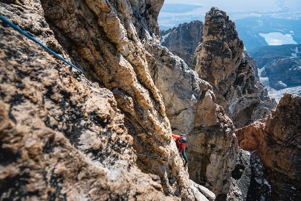 Alpine Climbing on the Direct Petzoldt Ridge (5.7) of the Grand Teton in Grand Teton National Park. Photo by Dalton Johnson