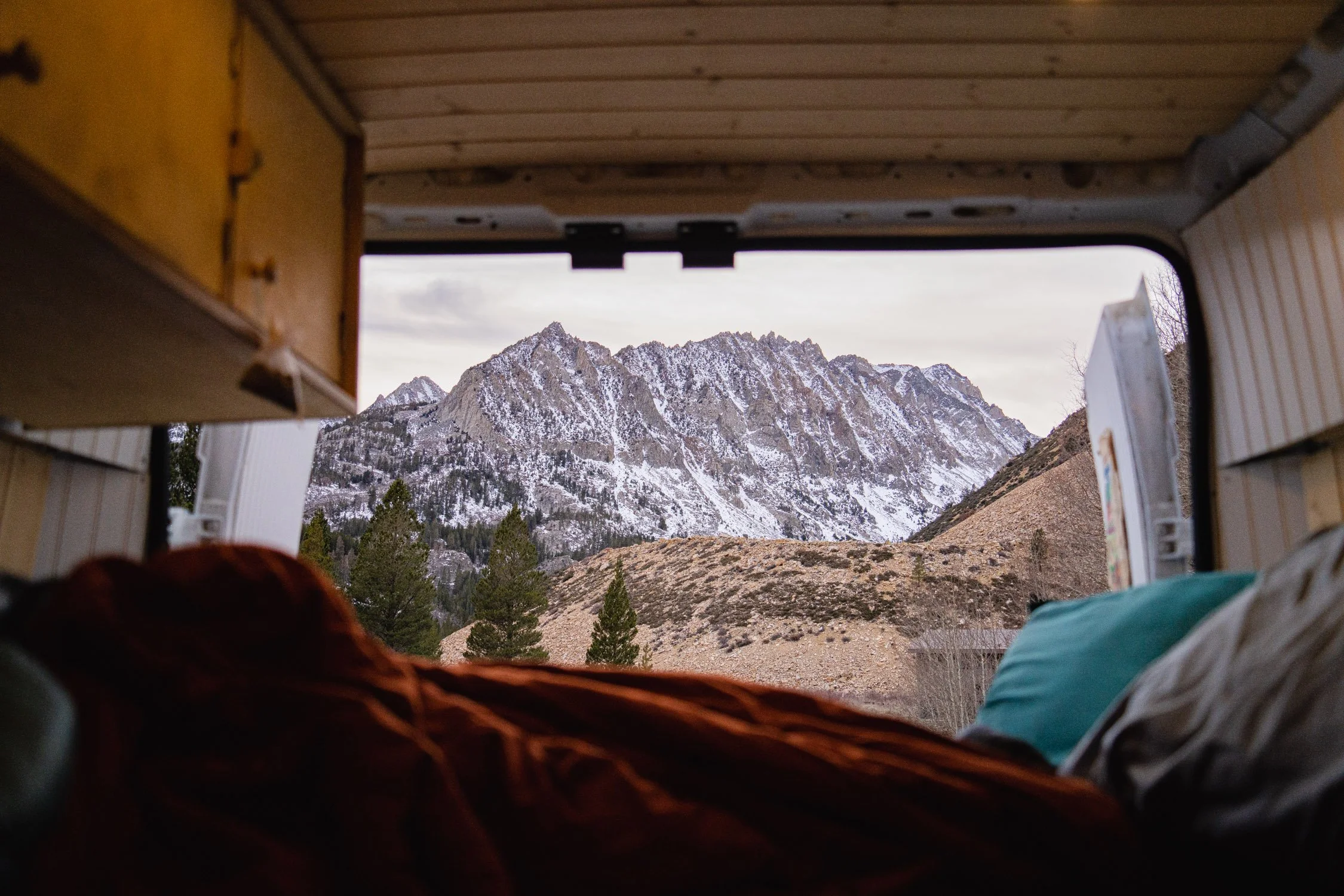 Mountain views out the back of the van. Photo by Dalton Johnson