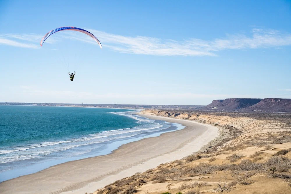 Paragliding above the cliffs near San Juanico in Baja, Mexico. Photograph by Dalton Johnson