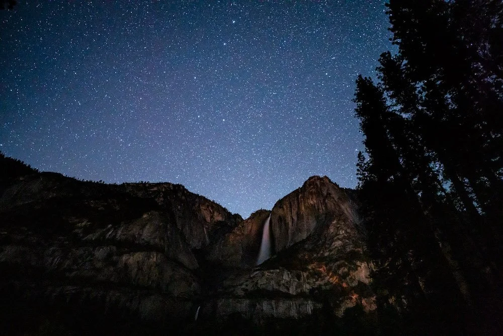 Yosemite Falls under the night sky. Photograph by Dalton Johnson